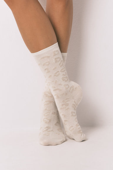 Long fluffy textured socks with a leopard print , made of soft and stretchy cotton. Designed to offer comfort and style during your daily activitie...