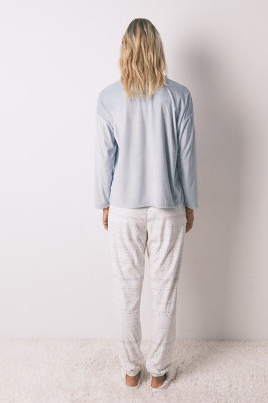 Pyjamas made with a long sleeve T-shirt in super soft velvet fabric and fleece fabric trouser . Ideal for staying at home super warm and stylish. -...