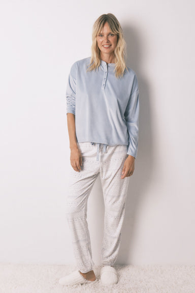Long pyjamas blue textured velvet pajamas