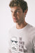 Soft fleece pajama set with long sleeves and pants. Top with a round neck featuring a seam detail at the center and cuffs. Pants with a Star Wars print elastic waistband at the hem and cuffs.