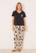 Pyjamas made of 100% cotton fabric , consisting of a short-sleeved T-shirt in black and long trouser with a contrasting all-over palm tree print . Ideal for staying at home in super comfort and style.