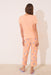 short sleeve pyjamas and capri trouser made from 100% cotton. The top features dropped short sleeve , a round neck , and a positioned front stitch. The trouser have an elastic waistband with a matching drawstring and a metallic star at the end. Ideal for sleeping or lounging around the house comfortably and with a fun touch.