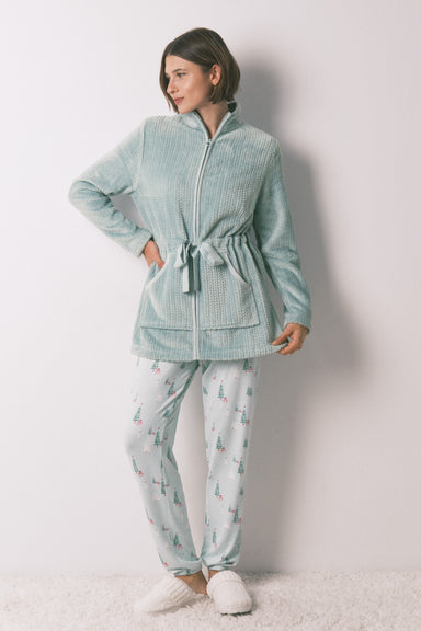 Midi robe made from plush fleece fabric, with super soft and comfortable herringbone effect textures. Perfect for staying warm and stylish at home....