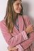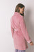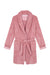Plain midi-length long-sleeved robe in pink fleece with a printed interior at the neckline and a matching handle for hanging the garment. It's super warm and pleasant to the touch.
