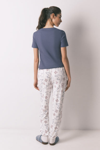 Short-sleeved T-shirt and Capri pants pajama set, made from super-soft ribbed viscose fabric. Perfect for lounging at home in style and comfort. Pa...
