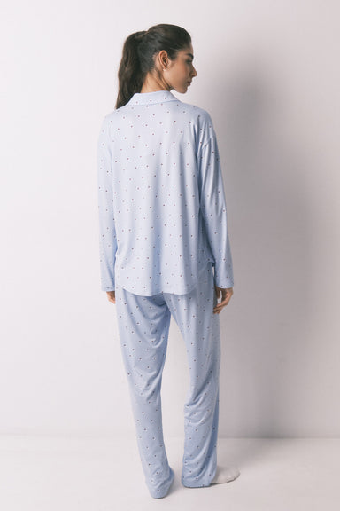 Recycled polyester polka-dot print classic long pyjamas. Made from pleasant super soft and warm "Winter soft" fabric. The top features a shirt coll...