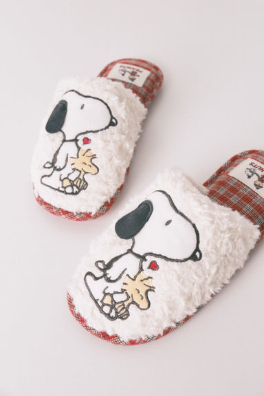 Fabric slippers with Snoopy embroidered and a plaid print . Super comfortable and warm, they're a true trend. Ideal for completing your loungewear ...