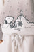 - Top features a Snoopy gradient print, a round neckline, and dropped shoulders with matching fleece cuffs. Adjustable waist with a matching drawstring.