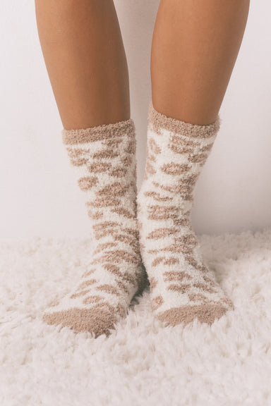 Long, fluffy, leopard- print socks . Super warm and comfortable for when the temperature drops, and you can wear them both at home and for your str...