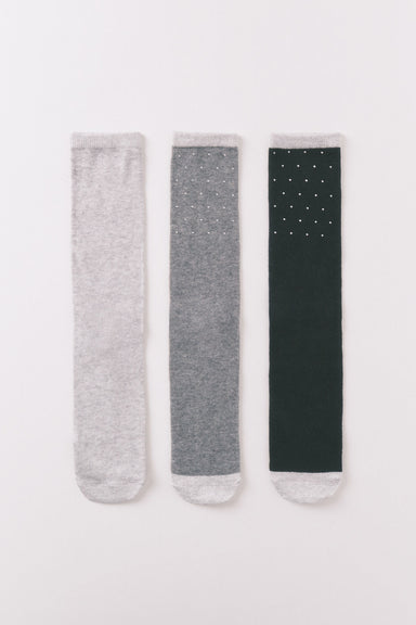 Pack of 3 long cotton socks in different colors: black and gray, with sparkly details. Let them shine through in your coolest looks. - Returns or e...