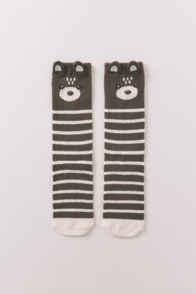 Long socks with a 3D bear print and ears. Super warm and comfortable for when the temperature drops, and you can wear them both at home and in your...