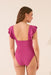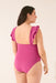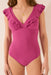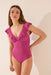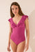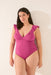 Shaping swimwear with a V- neckline , wide straps with decorative ruffles, removable cups , and adjustable straps . Fully lined. Designed to enhance the figure while offering maximum comfort.