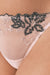 Thong -style panty in semi-sheer embroidered tulle . A delicate design to add a special touch to your intimate looks.