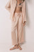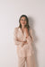 Long pyjamas with a long sleeve shirt collar top and heat-sealed silver rhinestone detail. Long trouser with open sides and an adjustable waist. Lightweight, ideal for warmer climates.